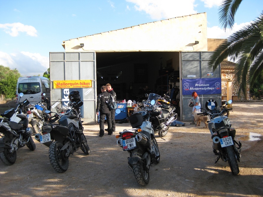 Flug und Transit waren ohne Problem und pünktlich um 15 Uhr stand wie vereinbart Peter mit dem Caddy vor dem Hotel, um uns zu Mallorquin Bikes zur Übernahme der Motorräder zu bringen.