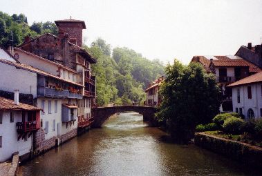 Erst St.-Jean-Pied-de-Port lohnt wieder einen Stop. In dem verträumten Baskenstädtchen lohnt sich ein Bummel durch die Altstadt. Wir erstehen noch einen Gateau de Basque für unsere Kaffeepause am Nachmittag. Die Pyrenäen laufen schon langsam zum Atlantik hin aus. Wir wollen noch auf den 926 Meter hohen Artzamendi, der neben einer 10 Kilometer langen steilen Anfahrt auch eine phantastische Aussicht bieten soll und zudem noch die Beobachtung von Gänsegeiern ermöglicht. Doch in Itxassou steht ein offensichtlich neues Schild, dass auch bei unzulänglichen Französischkenntnissen unmissverständlich darauf hinweist, dass ab hier Motorfahrzeuge untersagt sind. Nachdem wir beobachten, dass sich davon kaum Fahrzeuge abschrecken lassen fahren wir zunächst bis zum nächsten Ort weiter. Ein weiteres Schild dort nimmt uns dann doch den Mut. Wir machen am Ufer der Nive unsere Kaffeepause, lassen und den Gateau de Basque schmecken und bewundern den Felsbogen "Pas de Roland" der hier Ursprung einer Sage ist.