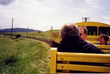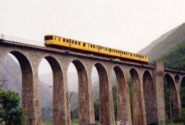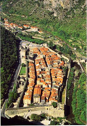 Unsere frühe Quartiersuche hat einen besonderen Grund: Wir wollen eine Fahrt mit dem Petit Train Jaune machen. Der kleine gelbe Zug ist die Attraktion der Region. In teilweise offenen Waggons kämpft sich der Zug durch die abenteuerliche Bergwelt der Region, vorbei an Schluchten und Wasserfällen, über Brücken und durch finstere Tunnel. Die Gesamtstrecke von Villefrance nach Enveigt nimmt über zwei Stunden für eine Richtung in Anspruch. Wir begnügen uns mit der Hin- und Rückfahrt hinunter nach Villefrance de Conflent. So hält sich auch der Fahrpreis mit 45 Franc für eine Person in Grenzen. Der Reiseführer hat nicht zuviel versprochen. Trotz des noch ungemütlichen Wetters nehmen wir natürlich einen offenen Wagen für die Fahrt ins Tal. In Villefrance haben wir gut zwei Stunden Zeit bis zur Rückfahrt und lassen uns von dem kleinen Städtchen (260 Einwohner) verzaubern. Die dicken Mauern, die auch diesen Ort umgeben, haben ihn seit dem 17. Jahrhundert nahezu unverändert gelassen. Handwerkskunst und Kulinarisches aus der Region werden in den engen Gassen geboten.