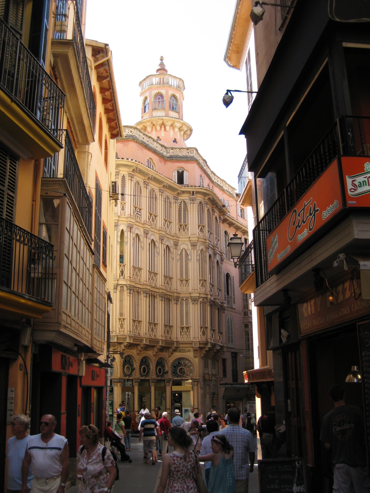 Motorradparkplätze sind zahlreich vorhanden, so dass wir uns im Zentrum gleich ins Gewühl stürzen. Der Kontrast zur Einsamkeit der Tramuntana könnte nicht größer sein. Hier liegen gemütliche Straßencafés, prächtige Adelspaläste, eindrucksvolle Sakralgebäude dicht beieinander. Auf sonnendurchglühten Plätzen verweilen, unter Schatten spendenden Arkaden seinen Café genießen oder in den zahllosen Geschäften sein letztes Urlaubsgeld verprassen, alles ist möglich.