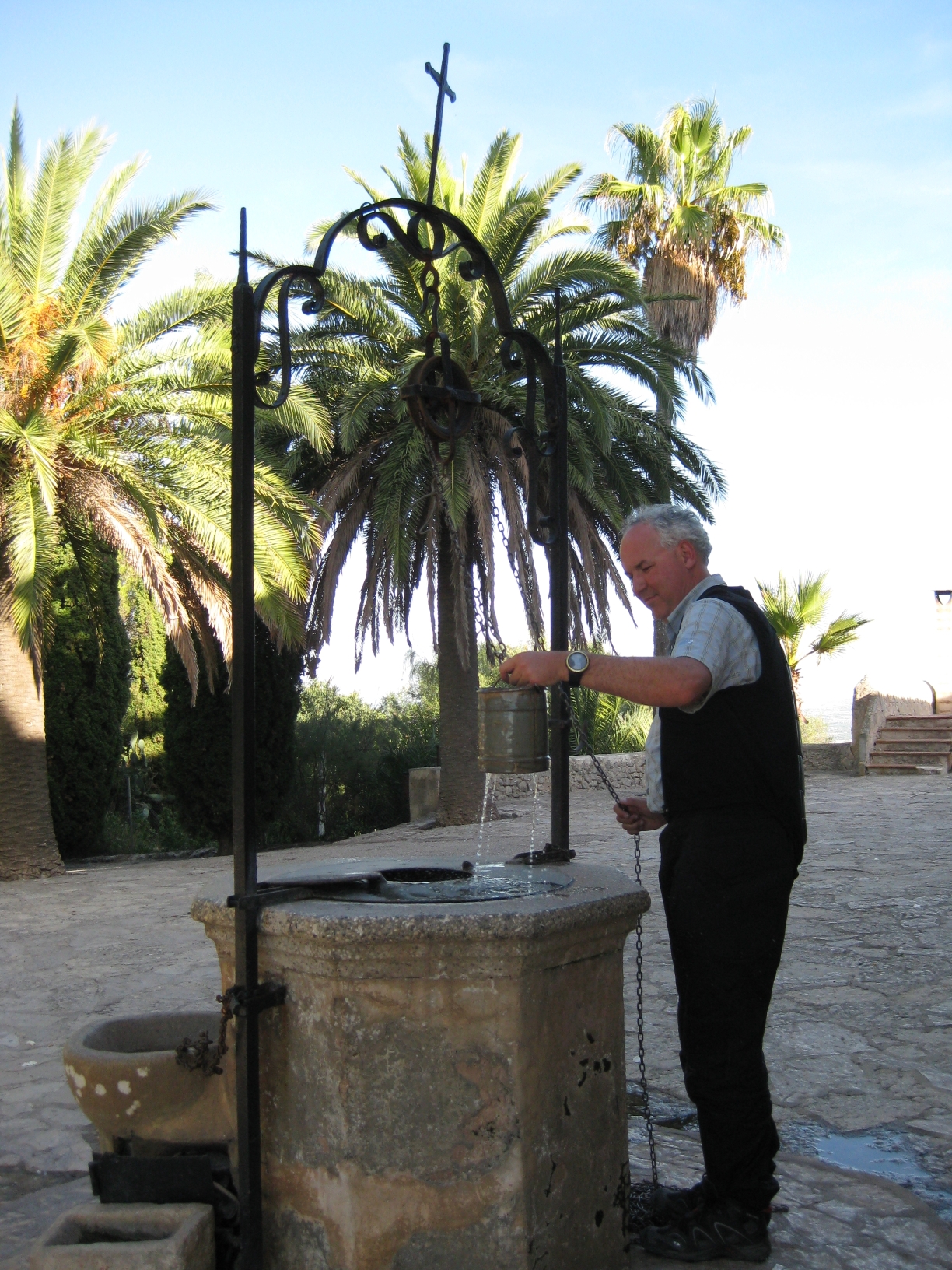 Den Ausblick über die Insel genießen nicht nur wir. In der Kirche muss gerade eine Trauung stattgefunden haben. Die Braut mit ihrem ausladenden Kleid in einem Fiat Cinquecento zu verstauen war für den Bräutigam wahrscheinlich eine größere Prüfung als das „Ja“ in der Kirche. Am Brunnen erfrischen wir uns. Im Laufe der Woche ist es immer wärmer geworden, inzwischen sind wir bei 28 Grad angekommen.